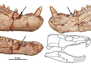 A equipa liderada pelo professor da Universidade de Toronto (Canadá, Robert Reisz, ao analisar com um scanner uma mandíbula preservada de um fóssil encontrado em Coffee Creek, no Texas, encontrou uma infeção considerável provocada pela perda de vários dentes e destruição da arcada dentária por abcessos.